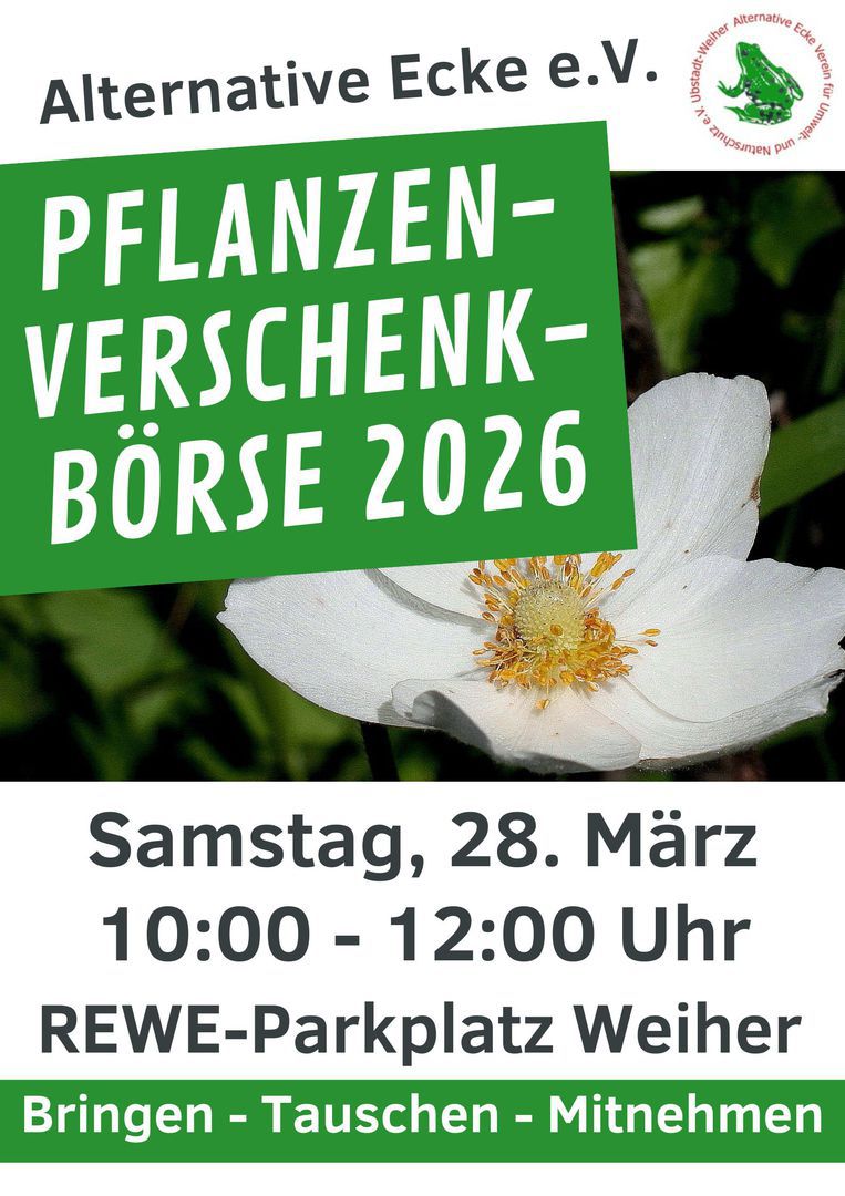 sondern mit der ersten Pflanzentauschbörse der Alternativen Ecke e.V. Am 28.03. war es wieder so weit: „Bringen – Tauschen – Mitnehmen“ hieß es auf dem Rewe-Parkplatz in