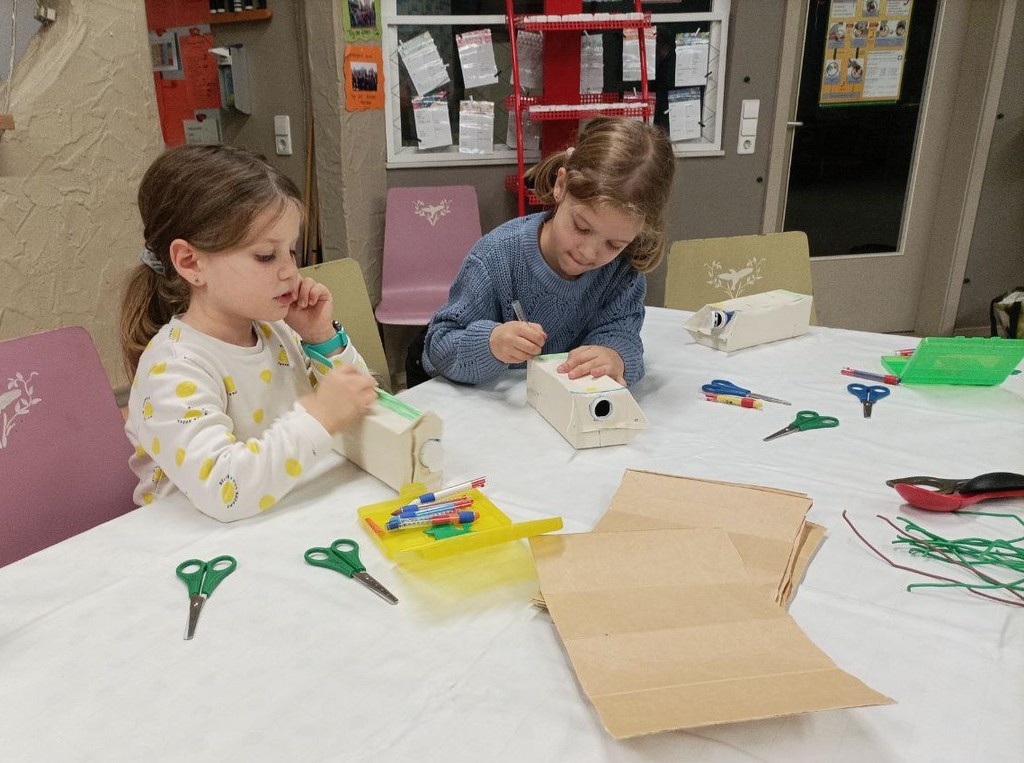 Nach einer wohlverdienten Vesperpause zeigte Marco anhand eines Modells, wie der Treibhauseffekt funktioniert. Es wurde klar, dass nicht nur die Rotfüchse, sondern verschiedene Fuchsarten auf der ganzen Welt von der Klimaveränderung betroffen sind: Polarfüchse, Wüstenfüchse, Andenfüchse und Graufüchse beispielsweise. Jedes Kind durfte sich anschließend eine eigene Fuchsmaske basteln. Es war schön zu sehen, wie flink die Kinder waren und wie selbstverständlich sie sich gegenseitig beim Basteln unterstützten.