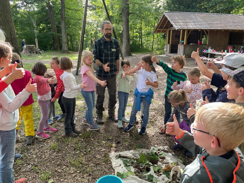 Am Montag, den 26. Mai 2025, machte das Waldmobil der Schutzgemeinschaft Deutscher Wald endlich wieder Station an der Grillhütte Stettfeld. Mit großer Neugier und Begeisterung wurde der Wald-Pädagoge Marco Ieronimo von 20 jungen Baumforscherinnen und Baumforschern empfangen.
