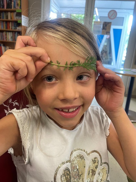 „Kräuterbutter-Spiel“: Wie schön, dass wir noch Zeit für ein Spiel hatten: Jedes Kind bekommt eine Heilpflanze zugeordnet. Wird der Pflanzenname aufgerufen, müssen z.B. alle Spitzwegeriche blitzschnell ihre Sitzplätze wechseln. Das Kind in der Mitte versucht bei der Gelegenheit einen Platz zu ergattern, denn es fehlt ein Sitzplatz; bei Kräuterbutter müssen alle den Platz tauschen. War das ein Spaß!
