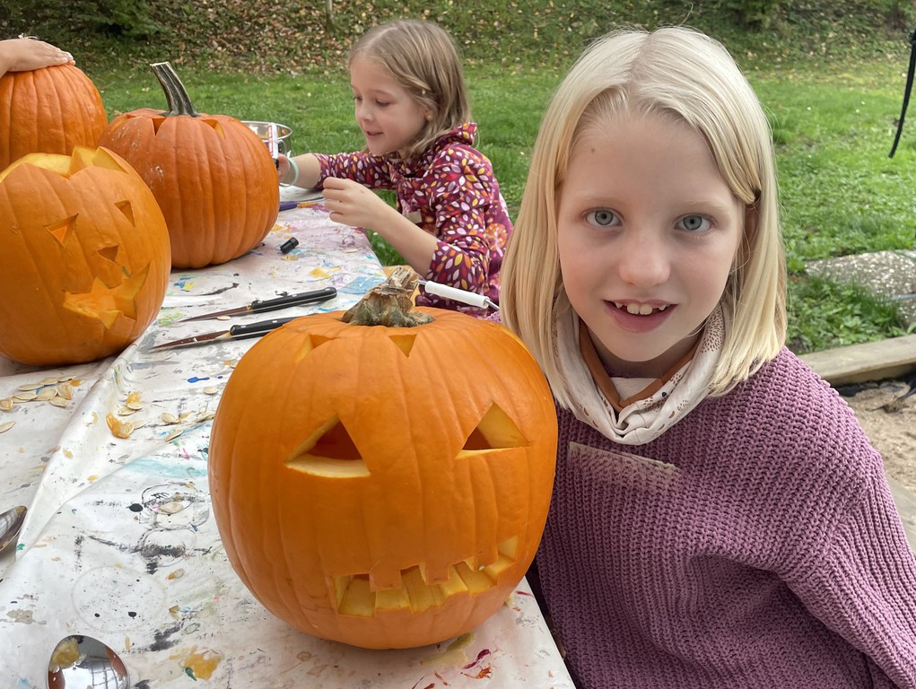 Zum Abschluss probierten alle die Kürbiskekse und den Kürbiskuchen und waren sich einig: Die Kekse und das Schnitzen waren das Schönste an diesem Nachmittag. Stolz transportierten die Kinder ihre „schweren“ Kunstwerke nach Hause! Vielen Dank an euch Kinder, ihr wart wieder eine tolle Gruppe. Und danke an das engagierte Team!