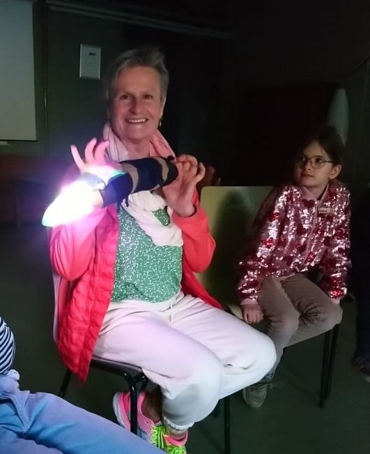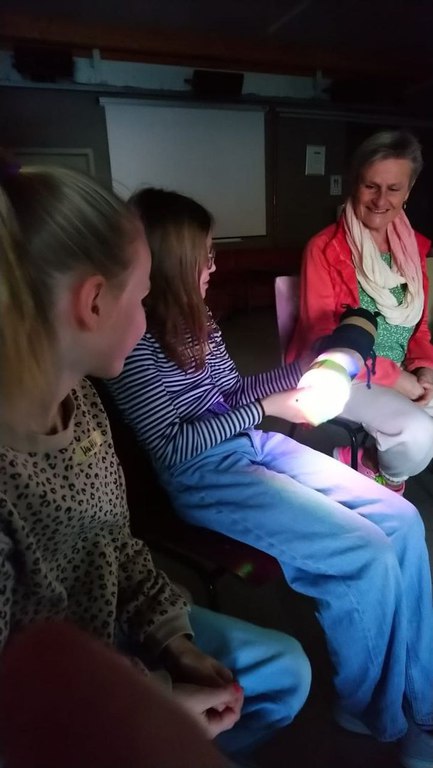 beiden selbstgenähten Stofftieren „Luxi“ und „Lumi“, deren Hinterende tatsächlich wunderschön leuchten konnte, wurde das Ganze besonders anschaulich.